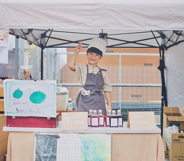 いつも見ていた「おさるのジョージ」のレモネードスタンドのように、お店を出してお金を稼いでみたいという自然な思いつきです。