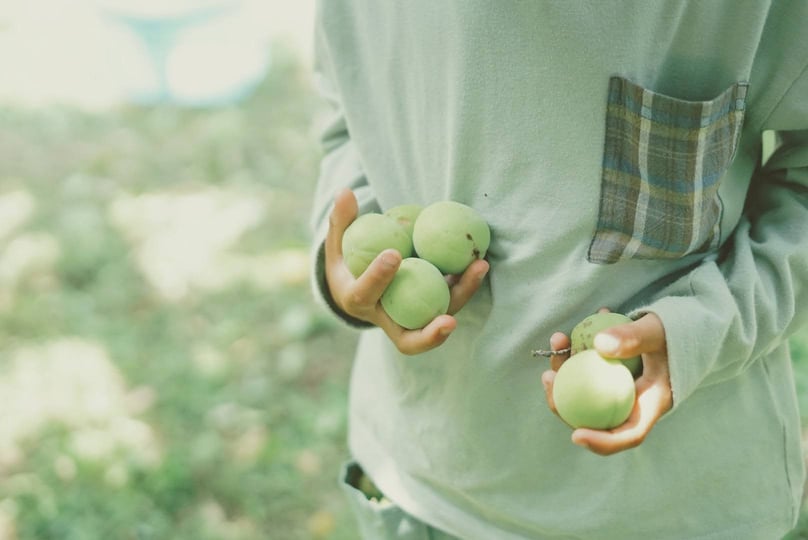 よく実った年には熟した梅の実がぽとぽとと落ちて転がっています。